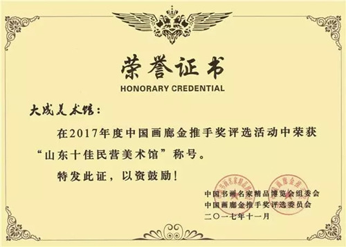 近日,在第六屆中國書畫市場健康發展論壇暨2017年度中國畫廊金推手獎頒獎盛典上,集團旗下的大成美術館(濟南城建集團直屬機構)應邀參加論壇并榮獲2017年度“山東十佳民營美術館”稱號。