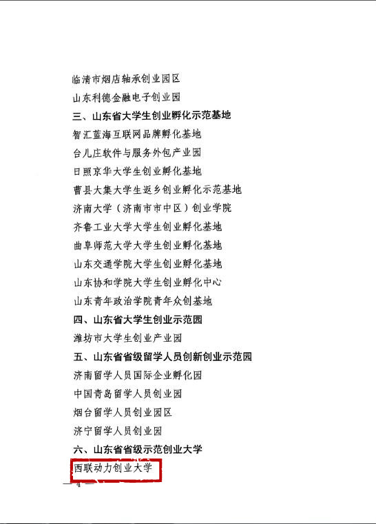 西聯動力獲評山東省省級示范創業大學