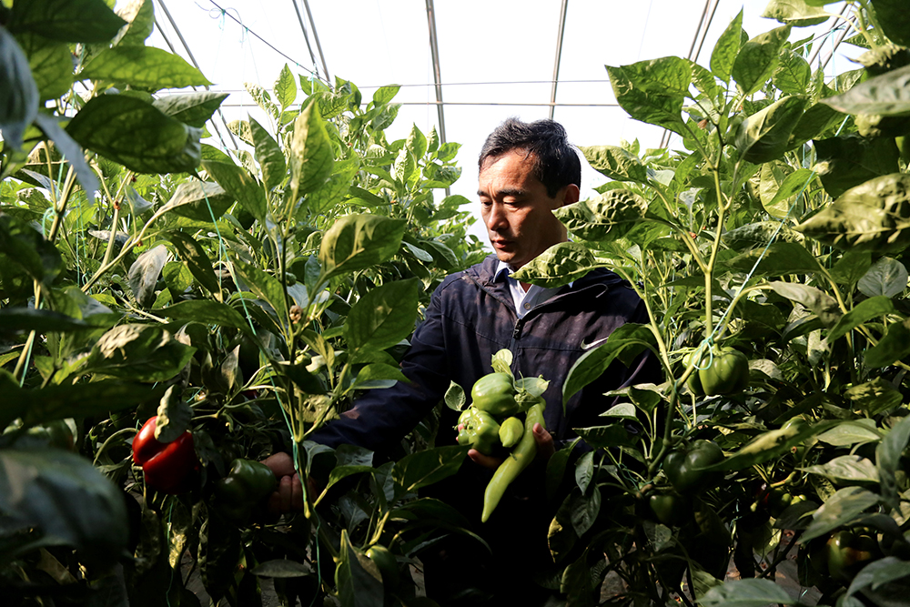 彩椒是陳德國最擅長種植的蔬菜品種之一。“彩椒的種植在書本上沒有固定標準,就像炒菜火候一樣,枝葉不修剪不行容易營養失調,修剪的太過也不行,還有風口上對溫度的調控同樣重要,太陽出來時風口拉開5公分,隨著溫度的上升要加大風口,溫度下降了要及時縮小風口,就像伺候孩子一樣,怕它感冒了”,陳德國生動地解釋道。