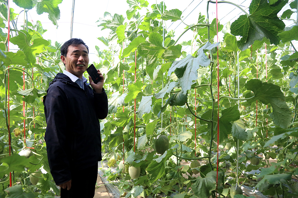 在哈密瓜種植棚里,陳德國已經電話安排好了本周六的采摘活動。現在正值采摘黃金季,前來植樹踏青、大棚蔬菜瓜果采摘、園區觀光的團隊絡繹不絕。