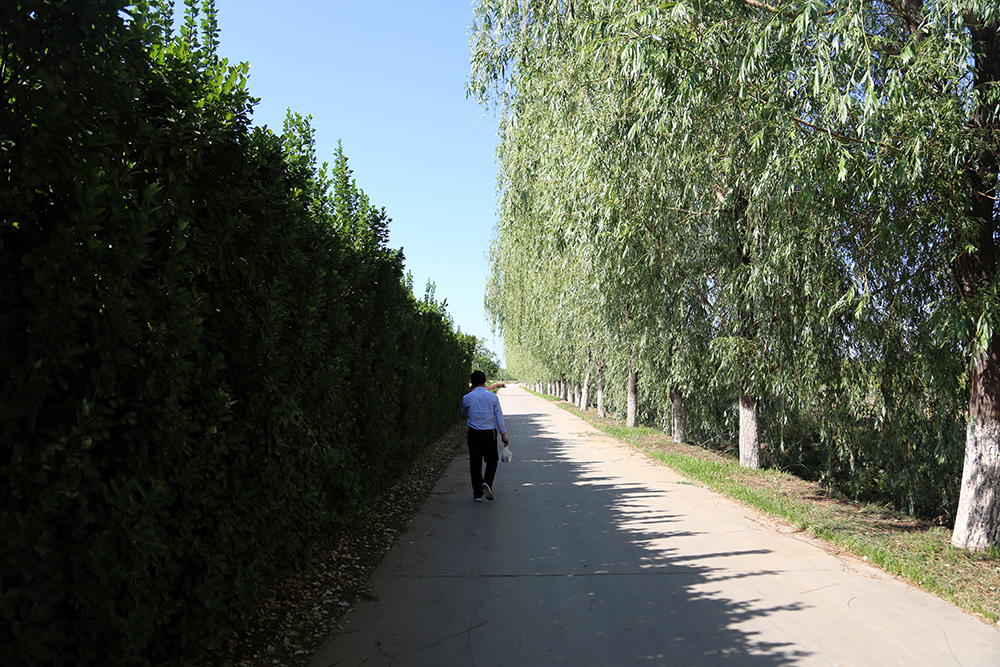 16:40趕往配菜室的路上,陳德國指著路邊一棵柳樹說:“這棵柳樹在我剛入職的時候還是棵小樹苗,三年時間,平時不會去注意它,但抬頭一看,猛地就發現它已經變成參天大樹了。”