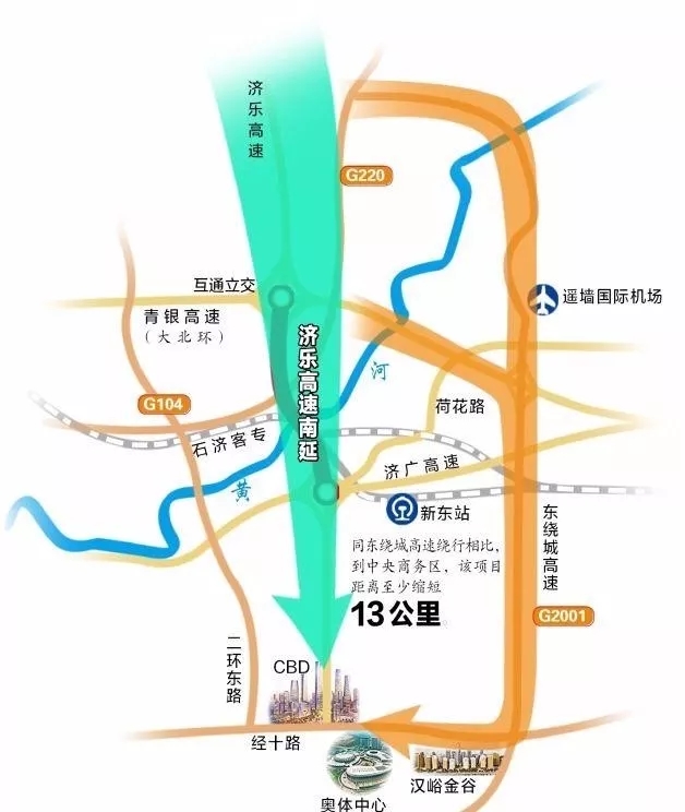 濟樂高速南延項目建成以后,將成為黃河北部地區到達市區東部和中央商務區最便捷的通道,極大縮短黃河北地區與市區的時空距離,濟陽、商河通過高速路可以直達中央商務區,同經過東繞城高速繞行相比,距離至少縮短13公里,對拉動黃河北部縣域經濟發展有很大的促進作用。
