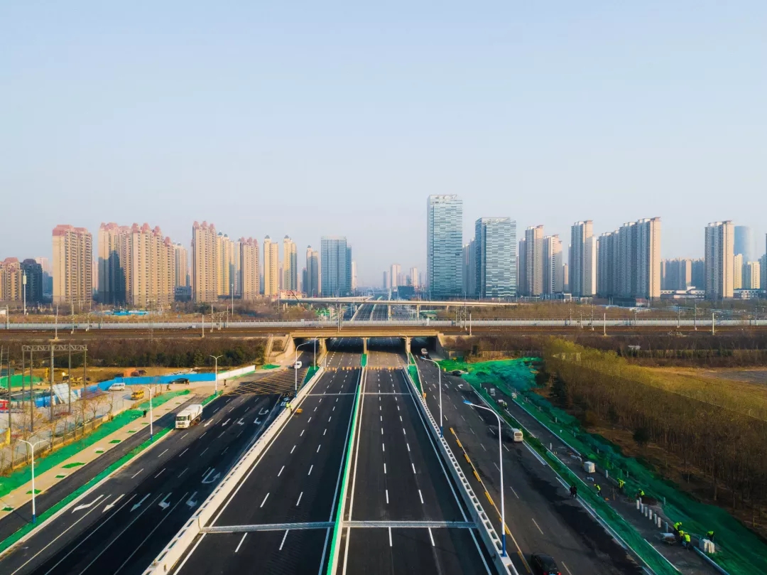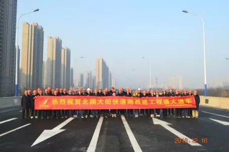 12月16日,北園大街快速路西延工程試通車,濟南第一條連通東西繞城高速橫貫城區的快速走廊建成。濟南城市建設集團所屬濟南城建集團有限公司(以下簡稱城建集團)、濟南黃河路橋建設集團有限公司(以下簡稱黃河路橋)分標段承建了北園大街快速路西延工程,在相關部門悉心指導和各參建單位大力支持下,經過9個月的攻堅奮戰,圓滿完成建設任務,比預定工期提前半年實現通車。