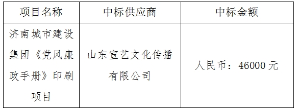 濟南城市建設(shè)集團《黨風(fēng)廉政手冊》印刷項目中標公示