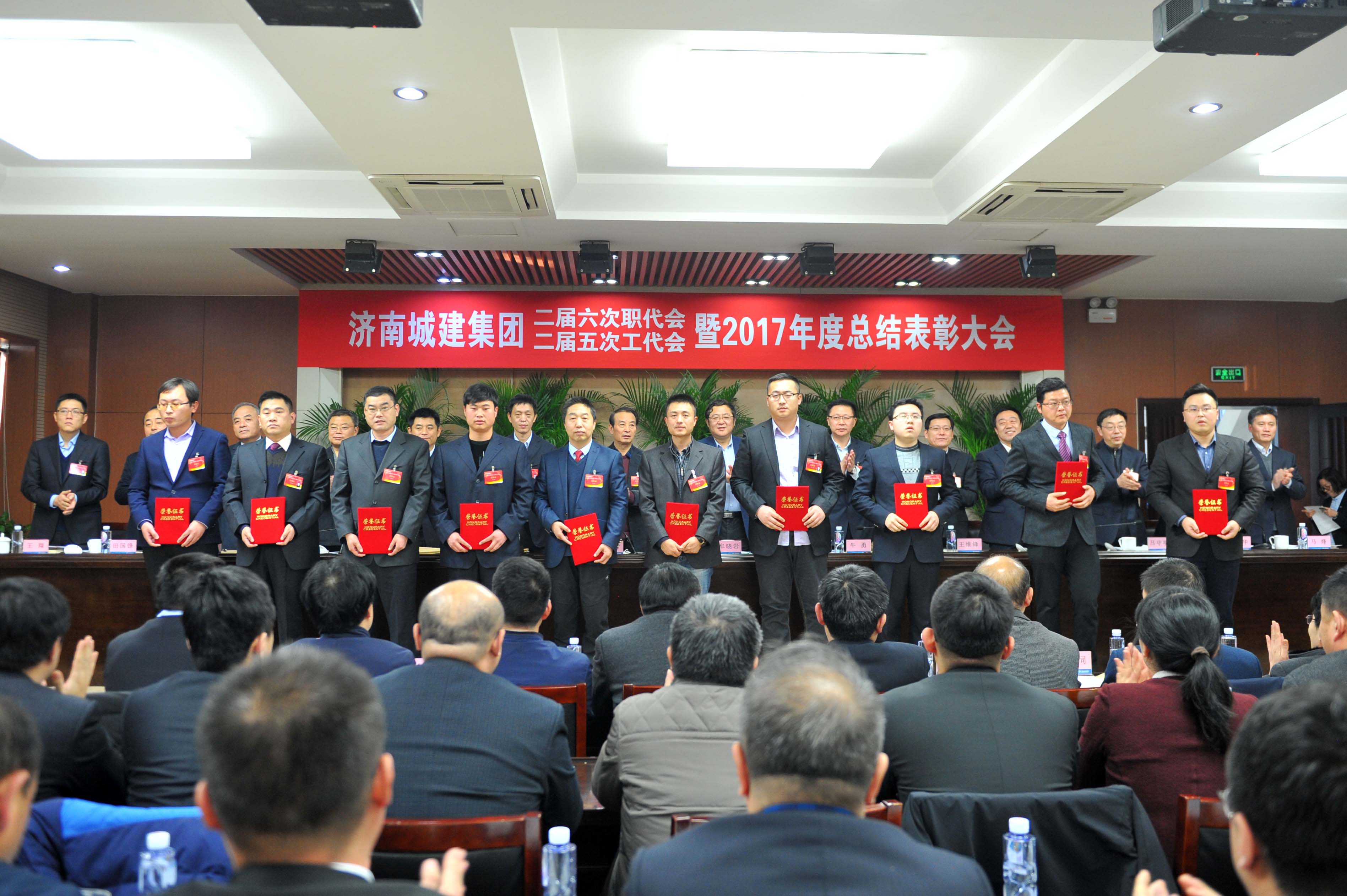在2017年度總結表彰大會上,宣讀了集團黨委《關于表彰2017年度先進基層黨團組織和先進個人的決定》、集團《關于表彰2017年度先進單位、先進集體和先進個人的決定》及集團工會《關于表彰2017年度先進分會和先進工會小組及工會積極分子的決定》。2017年度先進單位、集體及個人代表上臺領取了獎牌和榮譽證書。會議提出,各單位要以先進典型為榜樣,充分發揚“拼搏、創新、團隊、奉獻”的城建鐵軍精神,凝心聚力,開拓創新,為實現集團新的跨越發展做出更大貢獻。