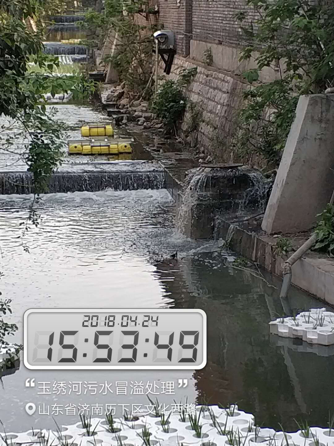 2018年4月24日濟南市政公用資產管理運營有限公司接到濟南市排水管理服務中心通知,在玉繡河下游發現一處檢查井冒溢,污水冒溢至玉繡河內直接造成河道污染,接到通知后,公司立即安排應急搶險小組前往現場,經過現場排查該管段位于玉繡河河床內,不屬于我公司管轄范圍,按照市城鄉水務局“2018清網行動”精神指示,本著有險情先搶險的原則,公司對該冒溢點立即進行搶修,保證管網正常運行。