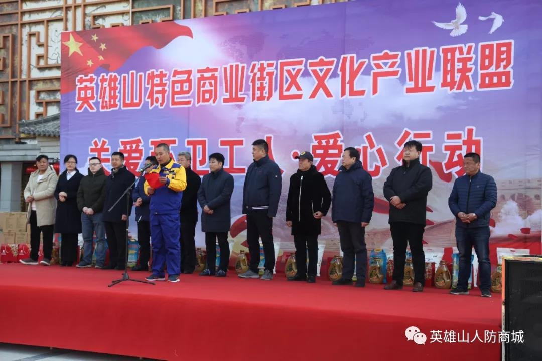 2019年2月1日,農(nóng)歷臘月二十七,濟(jì)南市英雄山人防工程管理有限責(zé)任公司作為英雄山特色商業(yè)街區(qū)文化產(chǎn)業(yè)聯(lián)盟成員單位,與多家聯(lián)盟單位聯(lián)合發(fā)起了中國濟(jì)南特色街區(qū)聯(lián)盟“關(guān)愛環(huán)衛(wèi)工人,愛心行動”主題公益活動,為服務(wù)于街區(qū)的環(huán)衛(wèi)工人們獻(xiàn)上節(jié)日的祝福,并送上了個人捐款與農(nóng)副產(chǎn)品。市中區(qū)副區(qū)長潘建軍、四里村街道辦事主任崔珉受邀參加了本次活動。