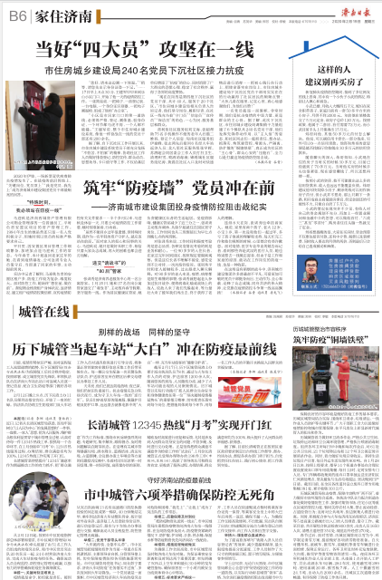 在這場沒有硝煙的戰斗中,濟南城市建設集團許多普通卻不平凡、可愛更加可敬的黨員干部挺身而出,主動作為、全心奉獻,詮釋了眾志成城、同舟共濟的偉大精神,讓黨旗在疫情防控斗爭第一線高高飄揚! (本報記者谷青通訊員房龍飛)
