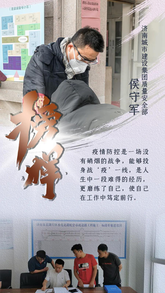新型冠狀病毒肺炎疫情發(fā)生以來,濟南城市建設(shè)集團認真貫徹落實中央、省、市關(guān)于疫情防控和復工復產(chǎn)的決策部署,上下一心、眾志成城,全體干部職工恪盡職守、扎根一線,全員全力投入到疫情防控阻擊戰(zhàn)中。期間,涌現(xiàn)出了眾多先進典型和感人故事,用實際行動詮釋了建設(shè)集團人的精神風貌和責任擔當。我們在集團宣傳平臺《榜樣》欄目,推出系列人物報道,挖掘宣傳一線典型,提振士氣、凝聚力量,激勵我們繼續(xù)前行,堅決打贏疫情防控的人民戰(zhàn)爭、總體戰(zhàn)、阻擊戰(zhàn)。