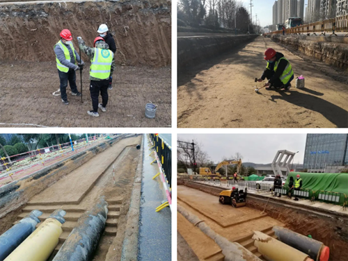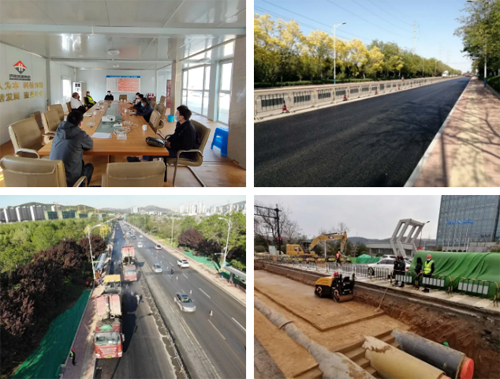 濟南市傳染病醫院應急配套工程西起韓倉河西側,東至市委黨校,全長4.5公里。包含新建D400、D1000給水管線、2條D1000熱力管線、D400、D500燃氣管線、18根綜合電力管線以及12根路燈管線恢復,合計長度約20公里。該工程工期緊、任務重、難點多,交通組織要求高,防疫壓力大。城建集團充分發揮國有企業責任擔當,迅速調集精銳力量,集中所需資源,優化設計,科學組織,精心施工,采用彈性交通導行,最大限度地減少對市民出行的影響,在確保疫情防控安全的前提下,全力以赴加快工程建設。