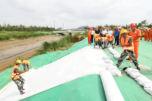 為進一步檢驗防汛應急預案的科學性、有效性和可操作性,提高應急反應和防汛搶險能力,6月24日上午,城建集團在龍脊河項目施工現場舉行“濟南城建集團2020年防汛應急演練”。山東省應急管理廳防汛抗旱處處長王秀中,濟南市應急管理局副局長魏強、黨組成員李學軍、防汛抗旱處處長周凱、科長楊志斌,城建集團總經理牟曉巖,副總經理呂守明、馬烽及分(子)公司經理、安全分管經理等150余人參加了演練活動。