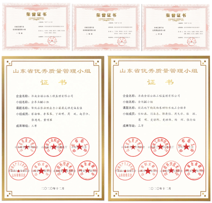 質量是企業的生命,工程質量是工程建設的核心。金諾公司積極組織科技工作者參加全面質量管理培訓、鼓勵科技工作者依托監理服務項目開展全面質量管理活動。2020年度金諾公司組建了10個QC小組,取得QC成果11篇。其中4個QC小組(成果)獲地市級獎項,4個QC小組(成果)獲省部級獎項。