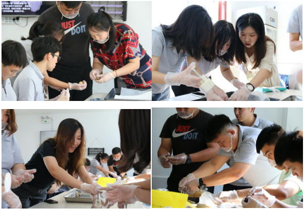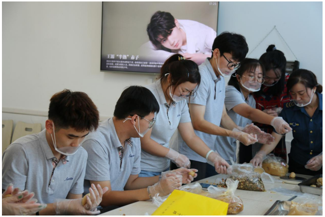 活動中,大家認真學習了月餅的制作方法,稱重、捏團、入模、成型,每個人分工作合作,每個步驟都做的一絲不茍。經過二十分鐘的烘烤,新鮮的月餅伴著香甜的氣息端出烤爐,大家也在辛苦過后品嘗到了自己的勞動成果。