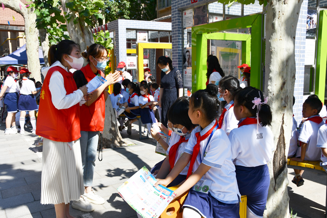 手牽手,心連心,一起成長。本次志愿者活動與全國安全月密切結合,提前印制“喜迎二十大 爭做好隊員”、“新型冠狀病毒預防指南”、“中小學生安全教育宣傳”等知識手冊,在現場進行發放,向小朋友們普及相關知識。