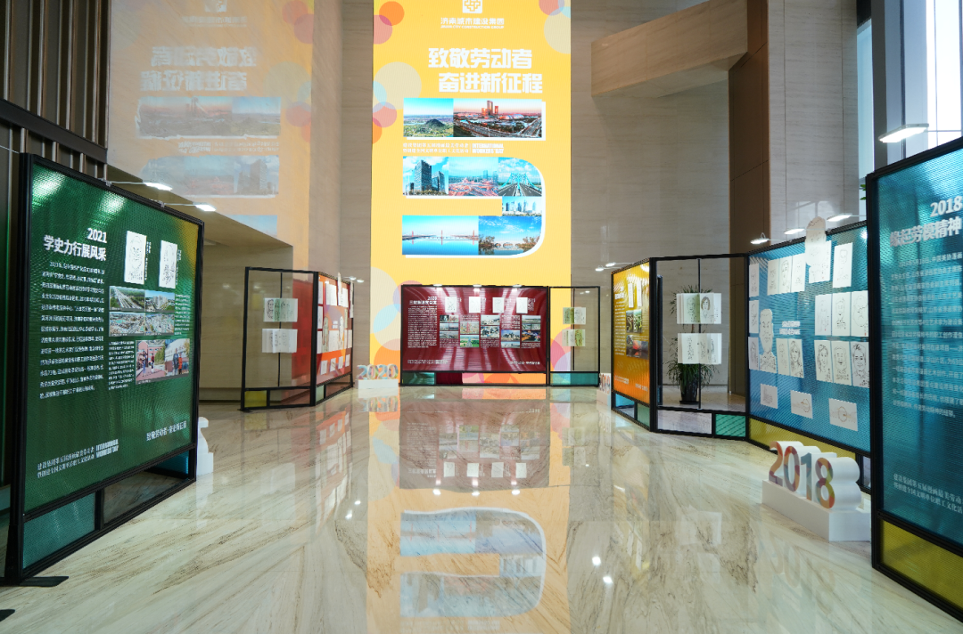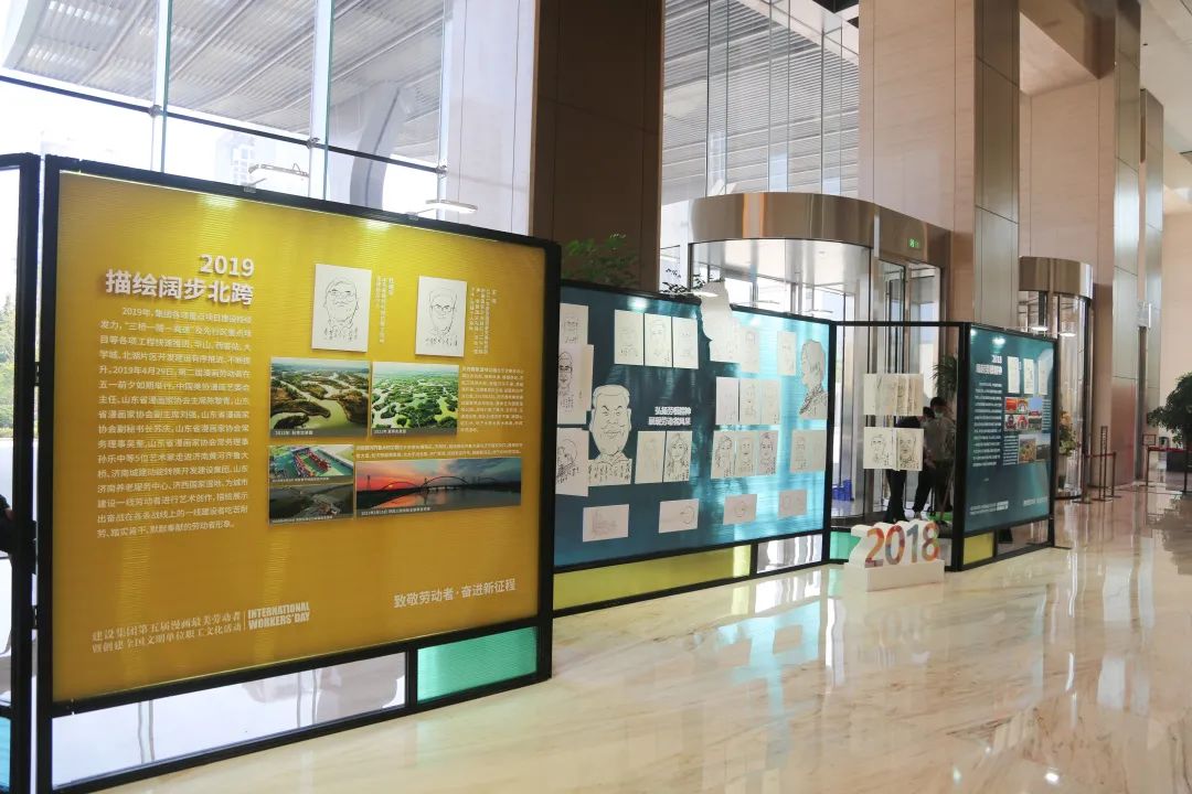 在第五屆“漫畫最美勞動者”活動中,12位書畫家在濟南城市建設大廈,為集團2019—2021年度榮獲市級以上榮譽獲得者創作書畫作品,同時,舉辦了過往四年漫畫作品展,以時間跨度為展覽軸線,從“人物成長”和“項目發展”兩個維度,從“2018·緣起勞模精神”“2019·描繪闊步北跨”“2020·三載重逢嘆巨變”“2021·學史力行展風采”四個章節集中呈現集團建設精神、勞動精神和重點項目的建設歷程,不斷凝聚人心,激勵廣大干部奮力攻堅,為新時代社會主義現代化強省會建設貢獻力量。