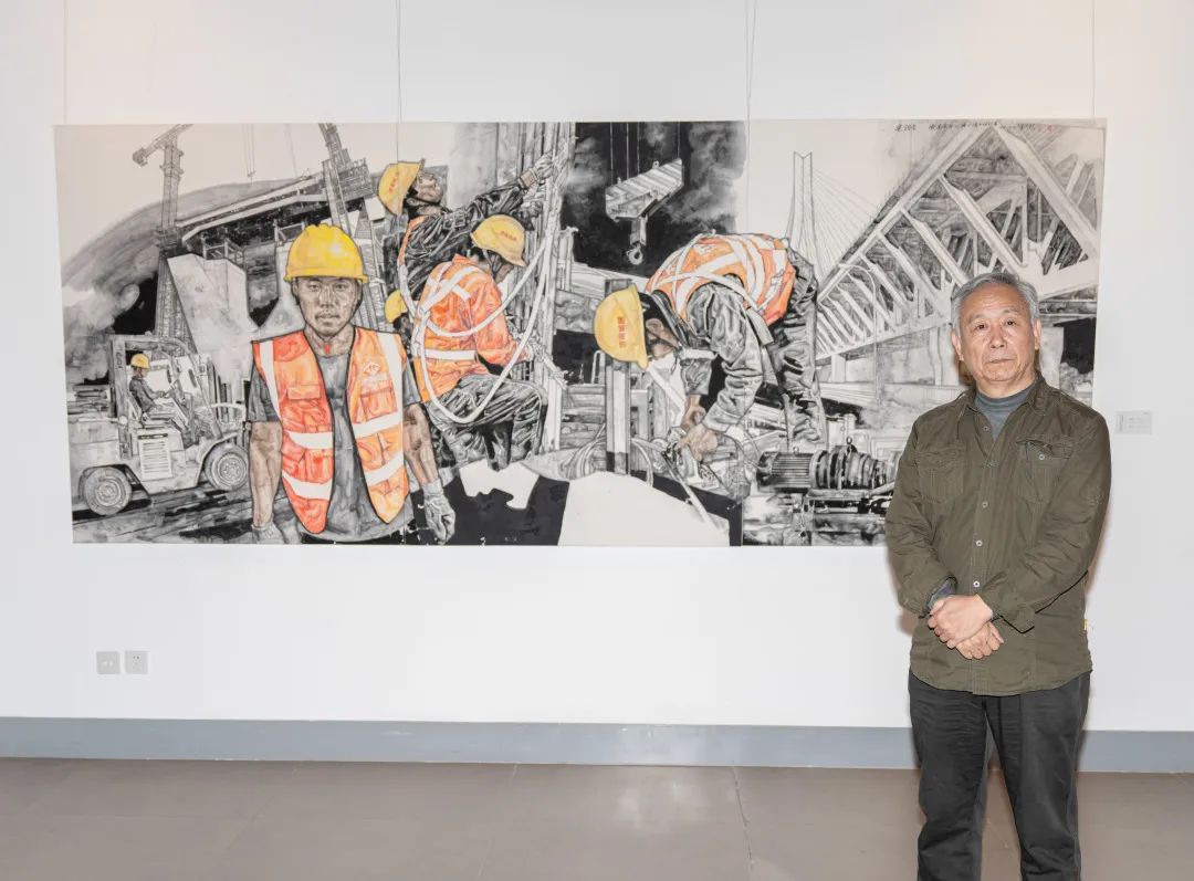 山東省中國(guó)畫(huà)學(xué)會(huì)副會(huì)長(zhǎng)、山東省美協(xié)綜合材料繪畫(huà)藝委會(huì)副會(huì)長(zhǎng)李兆虬走進(jìn)濟(jì)南黃河大橋改擴(kuò)建工程建設(shè)現(xiàn)場(chǎng),采風(fēng)創(chuàng)作了《建設(shè)者—濟(jì)南黃河公路大橋建設(shè)紀(jì)實(shí)》作品。