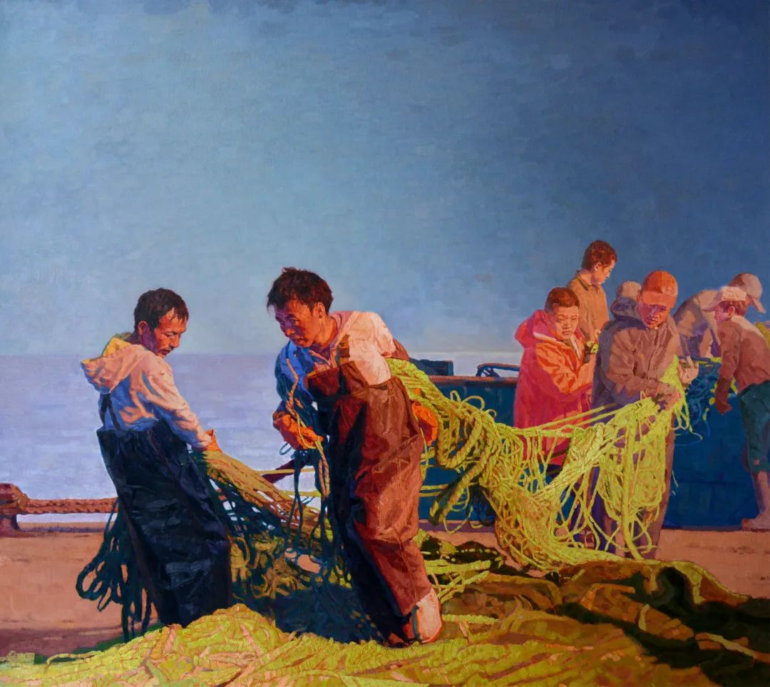 “藝術(shù)來(lái)源于生活,又高于生活”。吳愛(ài)民說(shuō):“雖然這幅畫(huà)的創(chuàng)作背景不是濟(jì)南,但體現(xiàn)的就是日常生活中勞動(dòng)者的點(diǎn)滴付出”。畫(huà)面中應(yīng)用了暖光源,去表現(xiàn)漁民豐收時(shí)的愉悅心情。“勞動(dòng)是一切幸福的源泉”。“因?yàn)楦餍懈鳂I(yè)的勞動(dòng)者默默付出,城市變得更好,人民也體會(huì)到自己創(chuàng)造的幸福生活”,吳愛(ài)民說(shuō)道。