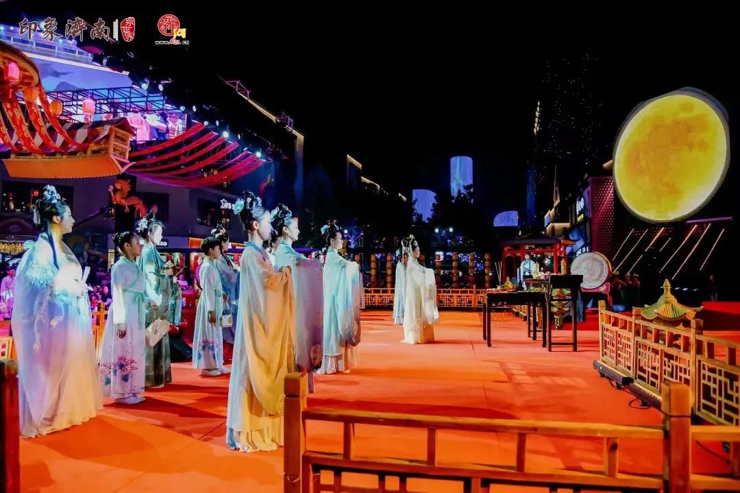 本次活動,作為印象濟南•泉世界品牌文化節(jié)事活動的又一創(chuàng)新呈現(xiàn),同時還是第十屆濟南國際泉水節(jié)的重要組成部分。中秋拜月大典在前四屆的經(jīng)驗基礎(chǔ)上,以“盛世歡歌繁華鎏金”主題,通過拜月典禮、文旅演藝、國風(fēng)互動等組合創(chuàng)意,持續(xù)打造踐行“文化兩創(chuàng)”的新載體。今年的中秋拜月大典,在展現(xiàn)祭月、賞月、拜月、頌月等傳統(tǒng)民俗的同時,通過歌舞表演、舞臺氛圍、國風(fēng)互動等形式融合展示,運用多元形態(tài)傳播中華優(yōu)秀傳統(tǒng)文化,讓傳統(tǒng)文化創(chuàng)新展示展演,深入游客內(nèi)心。
