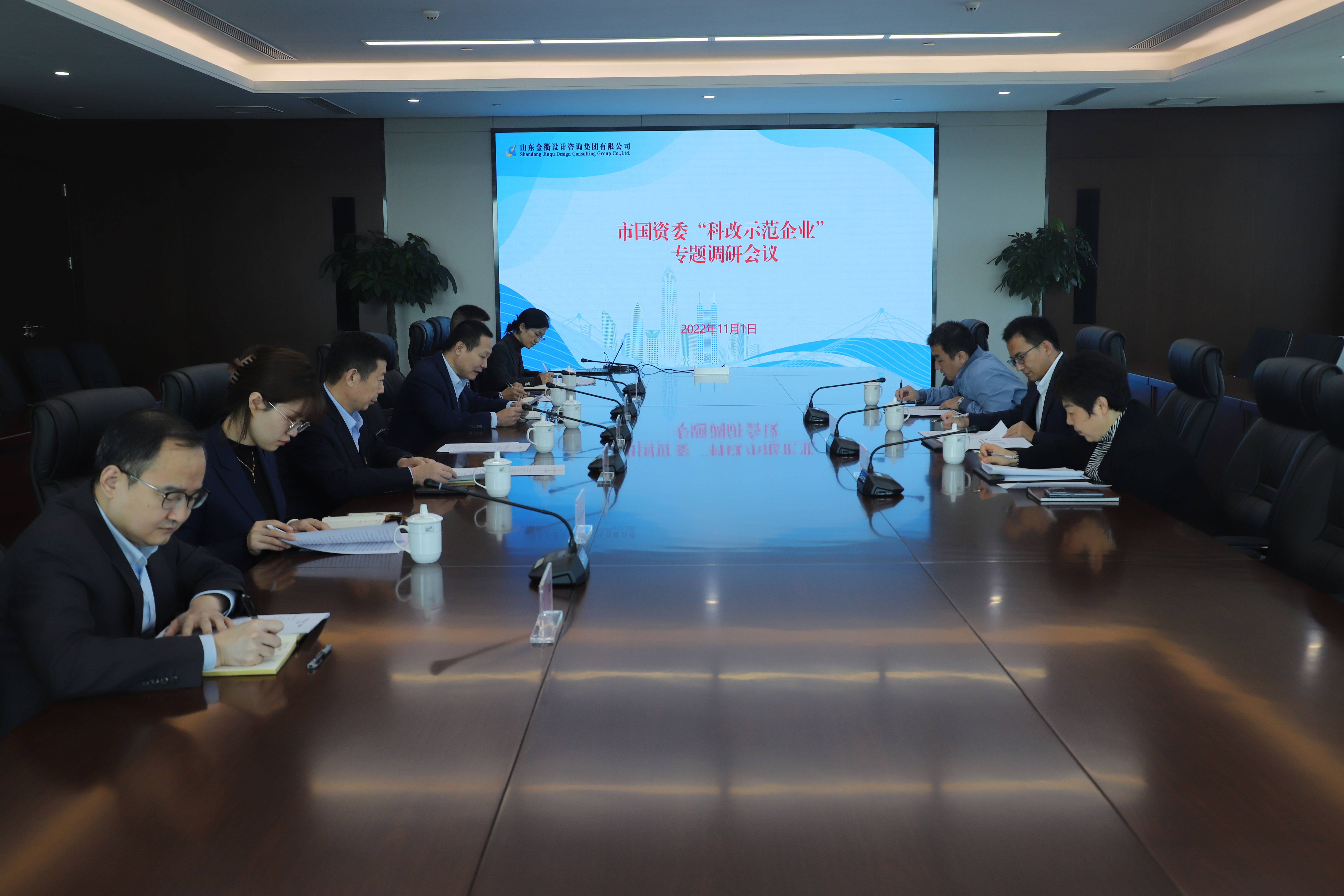 11月1日,濟南市國資委到金衢設計集團開展“科改示范企業”專題調研。市國資委黨委副書記、副主任沈文濤出席會議并講話,市國資委企業改革處、建設集團企業管理部、金衢設計集團主要負責人參加會議。