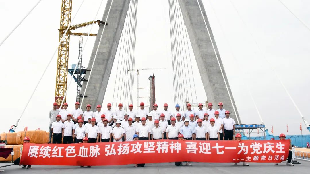 為推動主題教育高標準高質量開展,6月28日,集團工程三部黨支部聯合濟南市政公用資產管理運營有限公司第二黨支部及黃河大橋項目各黨組織在G104京嵐線濟南黃河公路大橋擴建工程組織開展迎七一主題黨日活動。