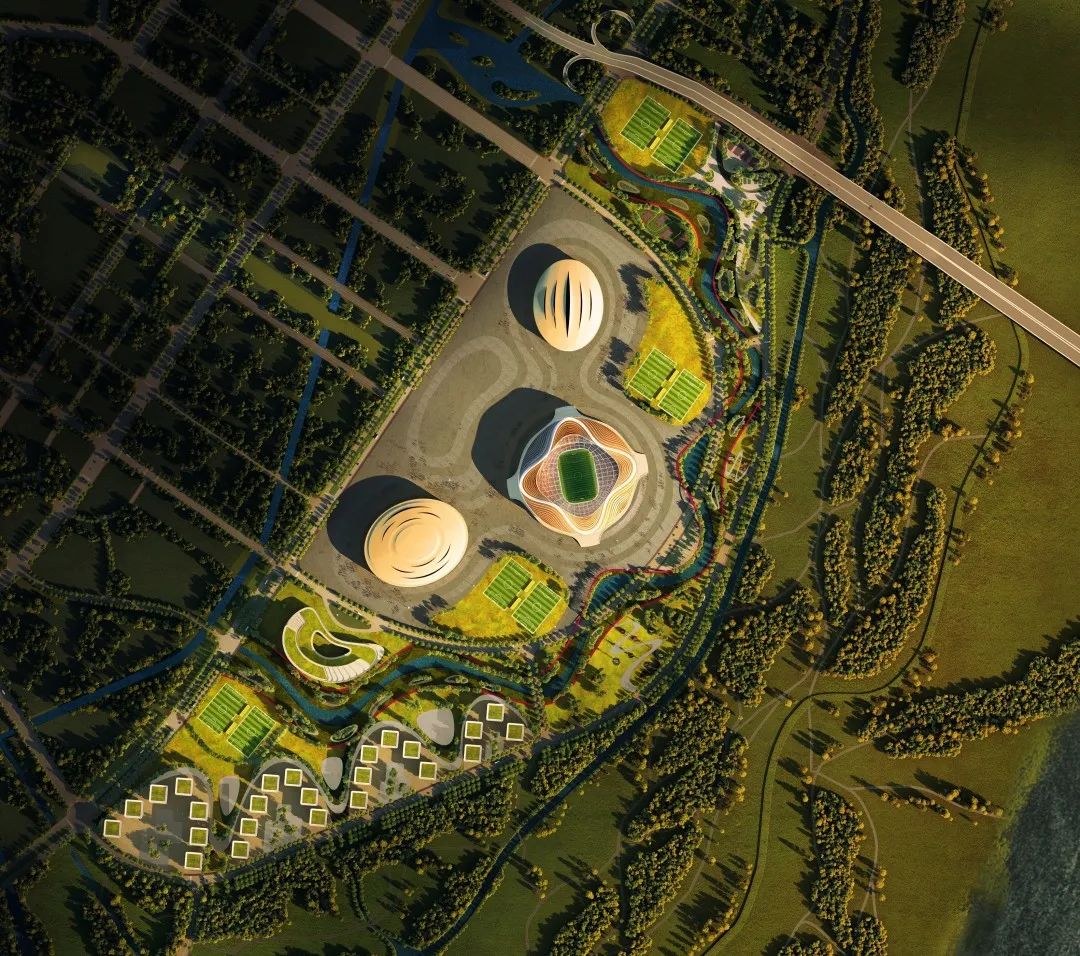 項目位于濟南新舊動能轉換起步區崔寨片區內,緊鄰黃河建設,北至鳳凰路、南至華河路、西至黃河大道、東至規劃路,總建筑面積 47.2 萬平方米。主要建設專業足球場、體育館、游泳館及全民健身中心,其中專業足球場建筑面積約 19.7 萬平方米;體育館建筑面積約 10.9 萬平方米;游泳館及全民健身中心建筑面積約 16.6 萬平方米。