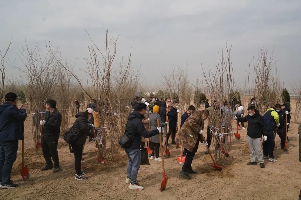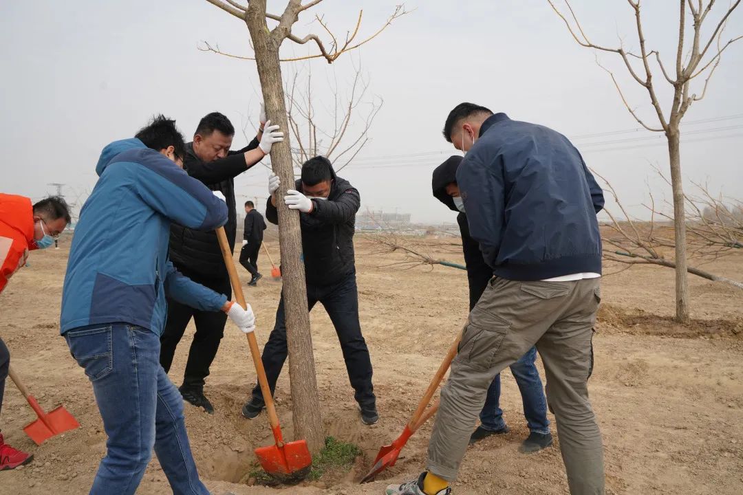 植樹活動中,大家在工作人員的指引下,密切合作、分工配合,在樹木種植范圍內,深挖基礎,厚培春壤,種下數百棵樹苗,為泉城濟南增添新綠。