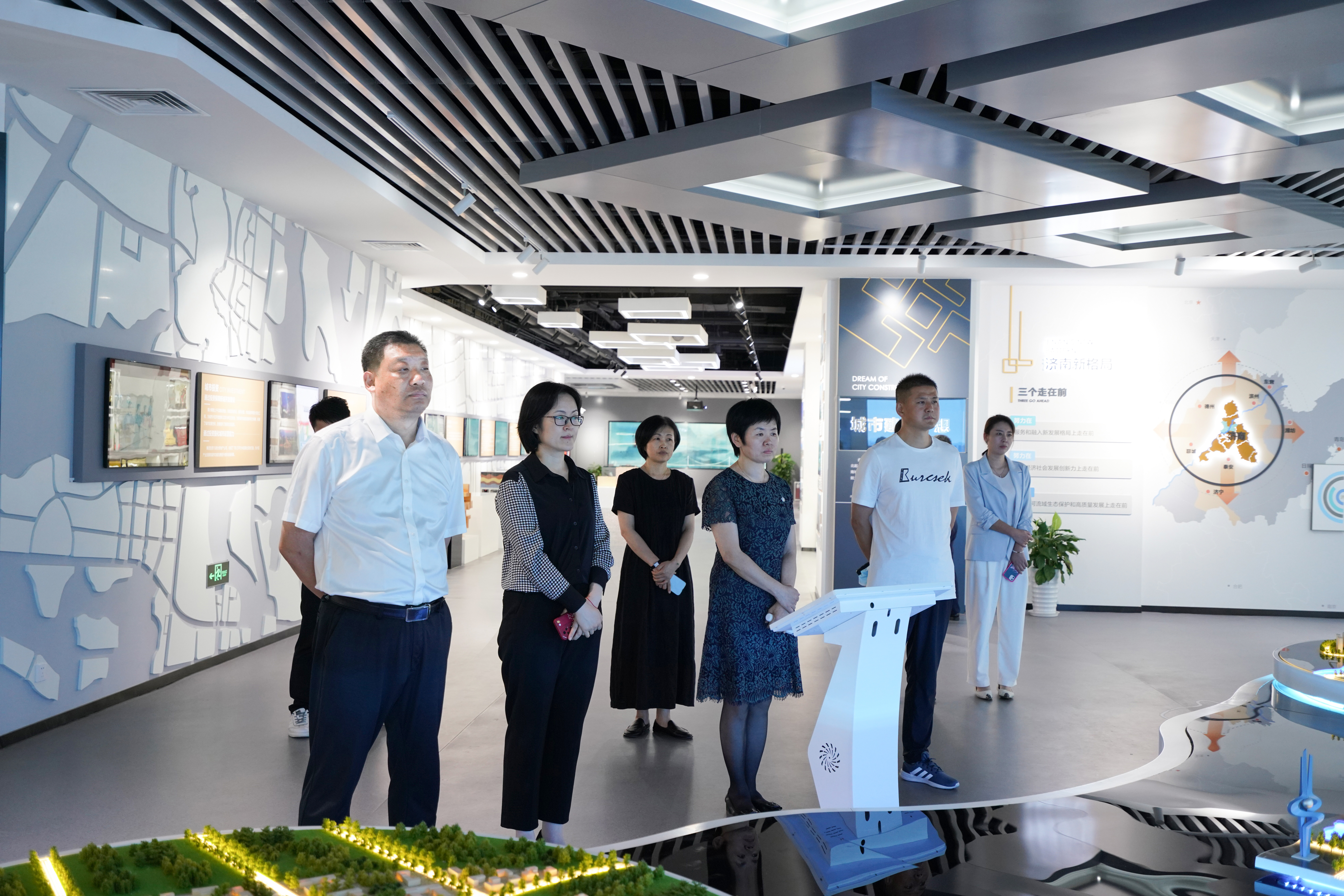 趙莉一行參觀了濟南城市建設集團展廳,通過聽取講解、溝通交流的方式,了解了建設集團黨建及業務開展情況。趙莉表示,建設集團堅持黨建引領,履行國有企業的責任,實現集團發展與城市發展同頻,展現了國企擔當,下一步,市婦聯與建設集團的交流合作,同時充分發揮“聯”字優勢,繼續當好宣傳員,一如既往地關心和支持集團發展。