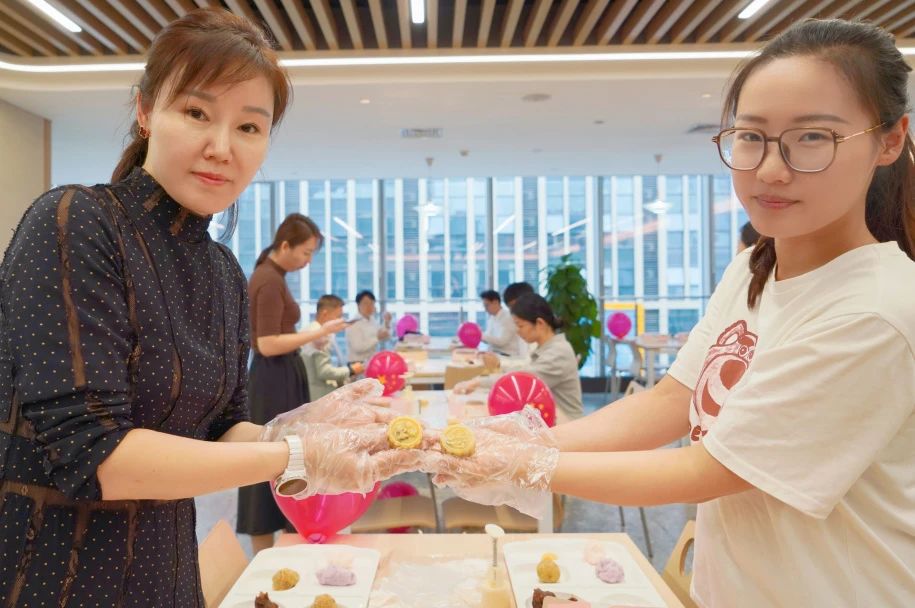 活動現場,糕點師傅悉心指導,員工們踴躍參與,并交流分享月餅的制作方法和文化內涵,在動手制作中感受傳統文化魅力和濃厚的節日氛圍。