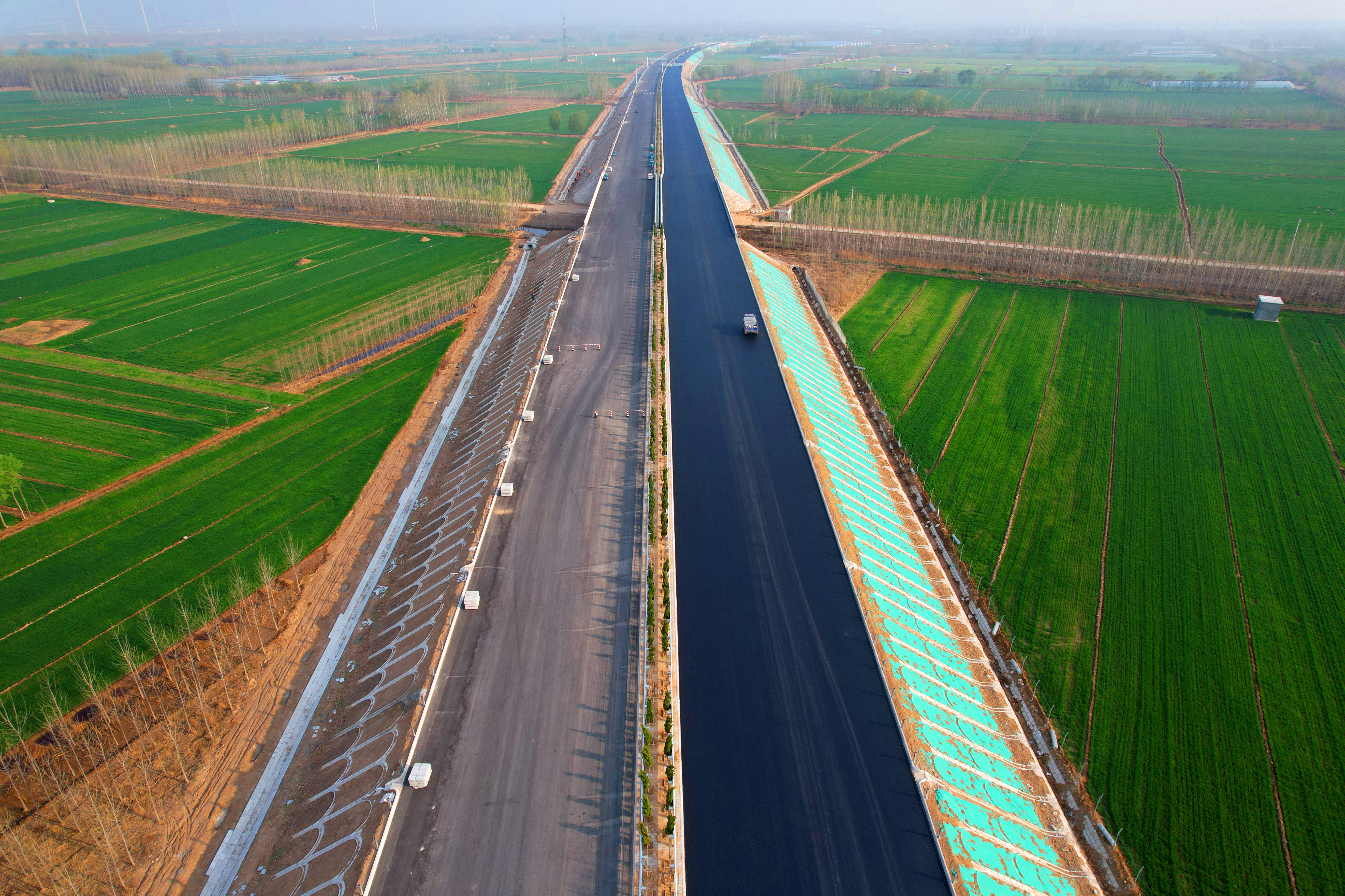 城建集團公司承建的大西環項目二分部主線總長度19公里,安仁互通匝道總長20公里,倫鎮互通收費站匝道總長6公里,設計3層水穩,總面積約171萬平方米。