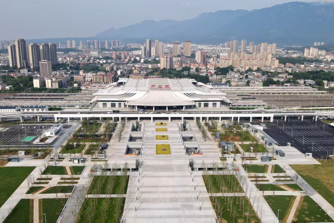 九江廬山站高鐵樞紐被定位為昌九走廊新樞紐、贛北發(fā)展新引擎、都市九江新門戶,遠期鐵路旅客發(fā)送量將達到約2200萬人次。城建集團公司承建的九江高鐵樞紐工程作為廬山站配套工程,是鐵路與公交客運的聯(lián)系紐帶,也是廬山站的交通集散中心。項目建設內(nèi)容主要包括高架匝道、地面道路、集散廣場和地下空間四部分。其中,高架匝道施工由連接快速路、地面道路與廬山站站房的8條匝道橋組成,總長約3.5公里;地面道路施工包括一橫四縱的五條道路,總長約2.5公里;集散廣場占地約99畝,廣場左側(cè)為公交車場站占地面積約18畝,右側(cè)為占地約25畝的長途車場站;地下空間共兩層,總建筑面積約為11萬平方米。目前項目高架匝道、地面道路、集散廣場建設均已完成,并開放投入使用。