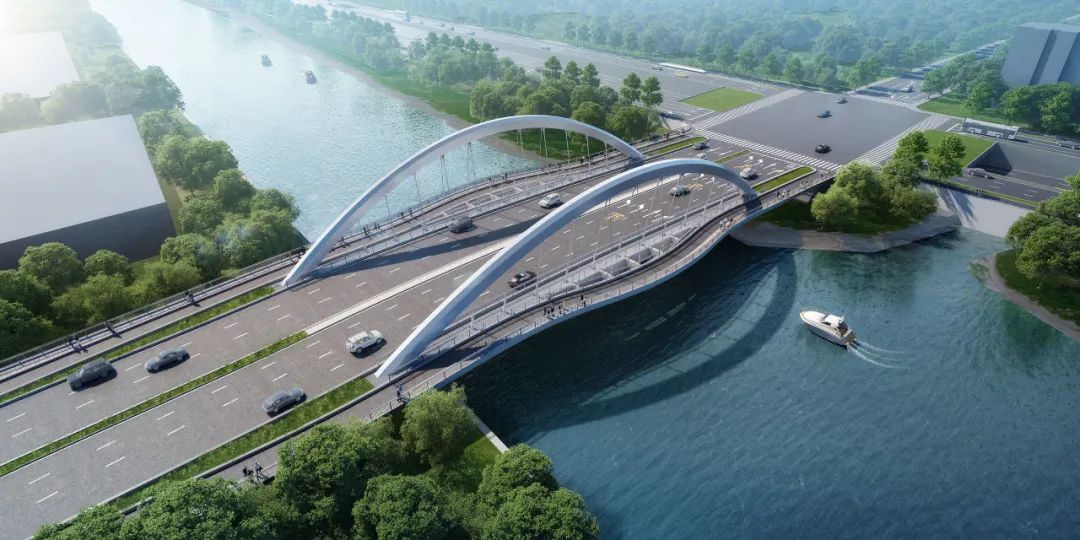 長陽街北延工程,北起金陵西路,南至蘇虹東路,全長1154米,雙向6車道,跨婁江河新建一座外傾式鋼結構系桿拱橋,主跨90米,梁高1.85米。同時,該工程同步對婁江大道進行改造,改造路段東起黃金港,西至中環東線婁江立交,全長1734米,主線雙向6車道,以下穿形式通過長陽街北延交叉口,兩側設輔路與交叉口平交。