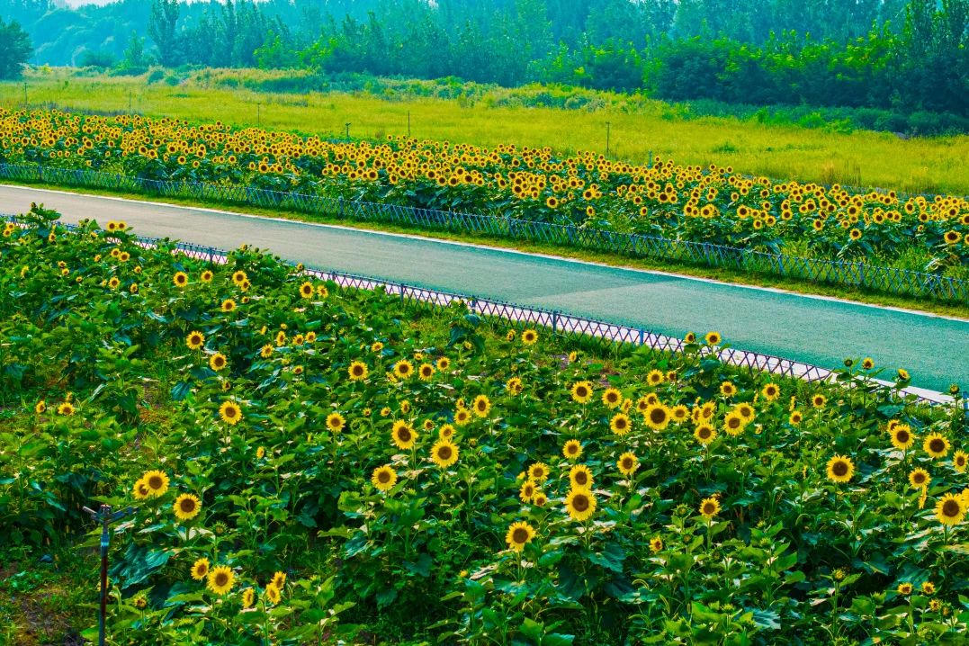 該片花海為黃河生態廊道防護林及苗圃工程項目一期淤背區農作物,項目由建設集團工程二部受起步區管委會委托建設,集團所屬濟西農業公司具體施工種植。自2021年起,濟西農業創新傳統作物種植模式,連續2年采用“油菜花+油葵”套種模式,打造起步區黃河北生態走廊示范段生態工程景觀,力爭“一栽一片、一綠一景”。該片花海不僅有“顏值”,還帶動產生了良好的經濟效益與社會效益,成為黃河北一道靚麗的風景線。