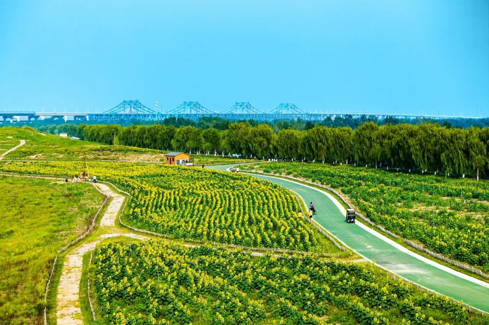 直接導航“濟南黃河大橋”,過橋后立即右轉,沿著黃河北大堤繼續向前直行2-3公里,道路左邊就能看到大片的花海。