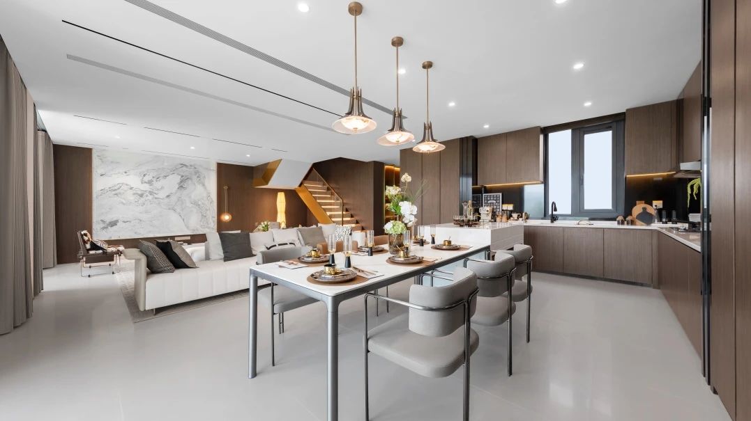項目采用南北雙花園設計,約6.6米挑高,頂層星空露臺;約10.2米大面寬餐客廳,定格超廣角視野;270°寬幕陽臺,每一角度皆是風景;全套房設計,妥帖考量每一位家人。