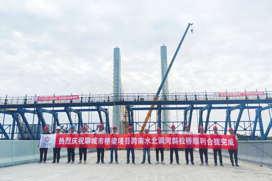 省重大項(xiàng)目建設(shè)再獲突破,城建集團(tuán)公司承建的聊城西關(guān)街高架橋工程斜拉橋主跨合龍