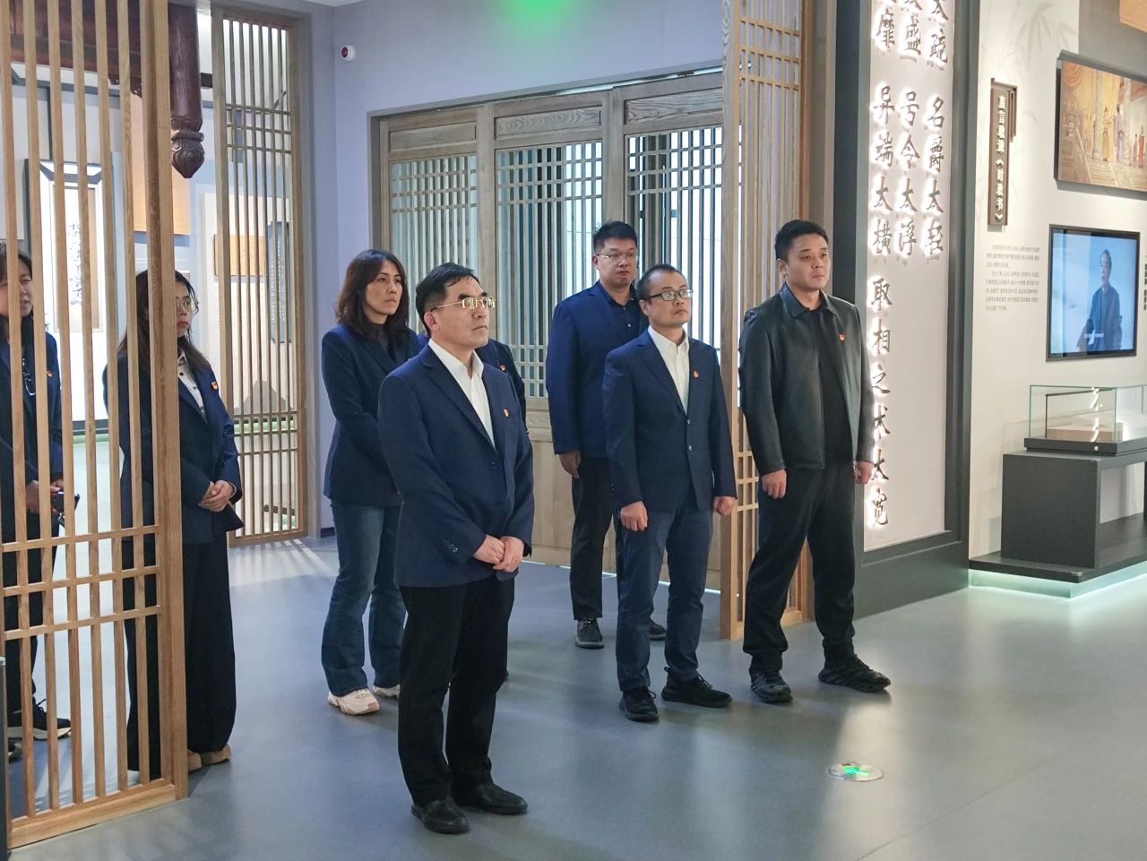 在講解人員的帶領下,全體黨員依次參觀了“一代名臣”“為政忠告”“散曲大家”“水月松風”四大主題展區,通過觀看展板、展墻、實物展品以及多媒體沉浸空間體驗等多種形式,詳細了解了張養浩的生平事跡和廉政思想,深刻感受到張養浩的廉潔自律、拒腐防變的高尚品質。