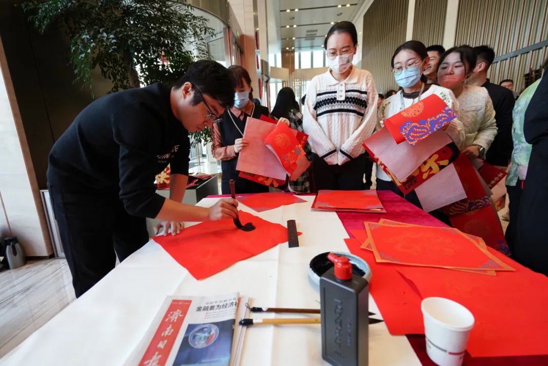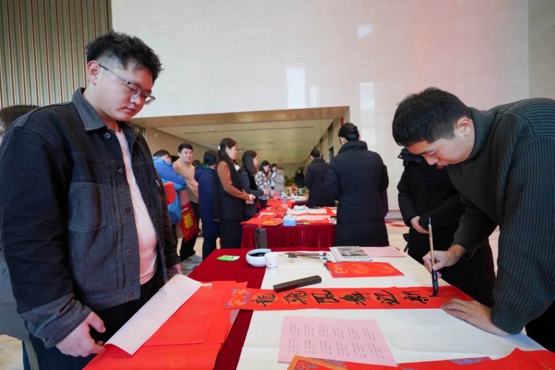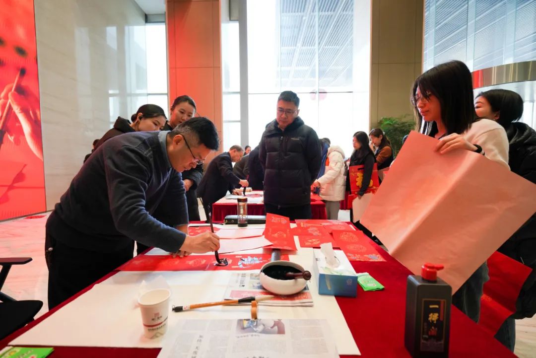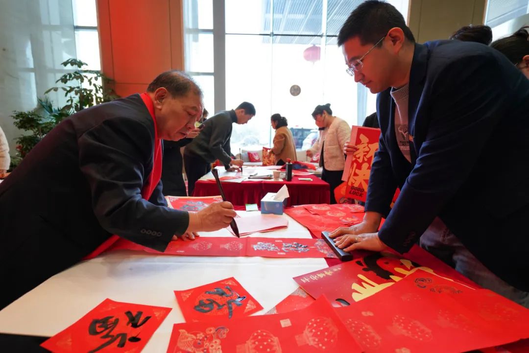 活動現(xiàn)場,書法家結合企業(yè)及職工的不同需求,為集團職工書寫春聯(lián),同時集團職工書法愛好者也紛紛參與其中,共同書寫對美好生活的期盼。