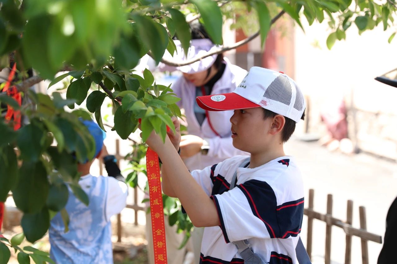 在狀元溝村,孩子們聆聽曹鴻勛狀元故事,參觀千年流蘇樹,制作并懸掛心愿卡片,在狀元門前拍照打卡,了解了狀元文化和中國古代科舉制度知識,感受了狀元溝村崇文重教的傳統(tǒng)風(fēng)俗。