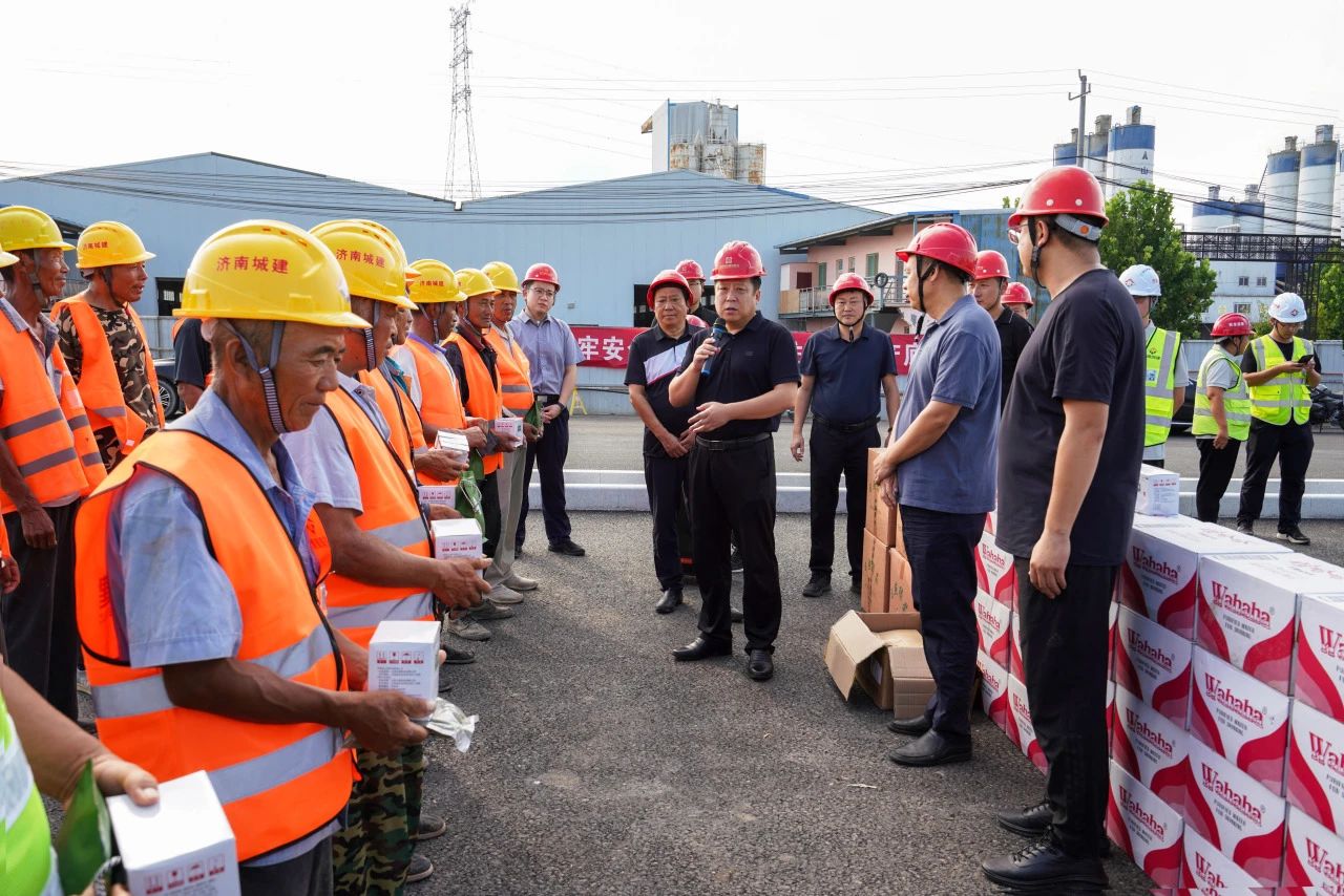 為認(rèn)真落實(shí)夏季高溫期間防暑降溫工作部署,做好高溫天氣作業(yè)勞動(dòng)保護(hù)工作,切實(shí)維護(hù)一線職工的勞動(dòng)安全健康權(quán)益,8月6日,建設(shè)集團(tuán)黨委副書記、總經(jīng)理?xiàng)罘鍘ш?duì)到項(xiàng)目一線開(kāi)展“送清涼”活動(dòng),集團(tuán)總經(jīng)理助理、安全總監(jiān)解漢忠,集團(tuán)總經(jīng)理助理翟彬參加活動(dòng)。