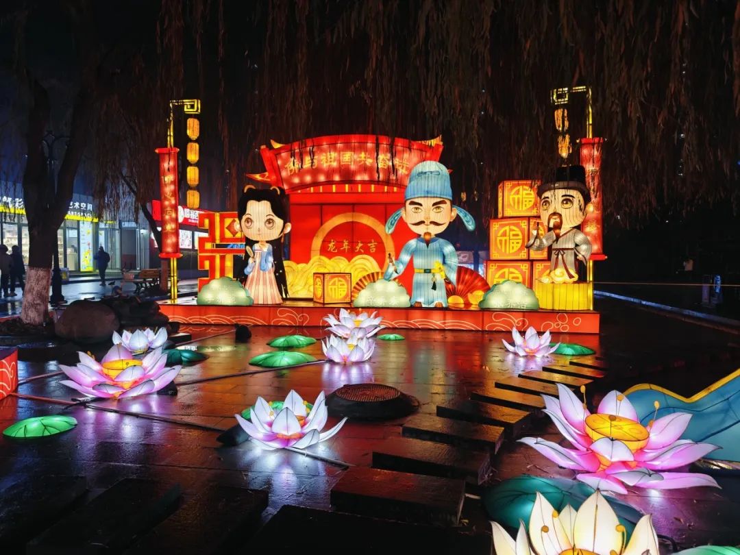 燈會沿街區(qū)泉印廣場、清泉石上流、卿風(fēng)大街等布局,設(shè)置千余盞紅燈籠,并搭建瑞龍迎春、齊魯名士、龍鼓爭鳴、龍鳳呈祥等6處大型主題燈組。