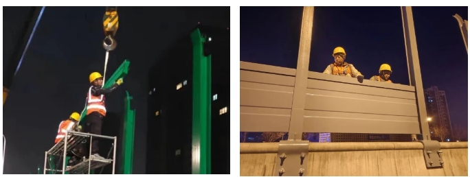 2023年濟(jì)南市聲屏障吸音降噪環(huán)保工程由建設(shè)集團(tuán)所屬山東金宇信息科技集團(tuán)有限公司承建,工程設(shè)計(jì)總長(zhǎng)8478.06米,涉及工業(yè)北高架橋、北園高架橋、二環(huán)西高架橋、二環(huán)南高架橋、緯六路高架橋、燕山立交橋、白馬山隧道等路段。施工內(nèi)容包含2.233m、2.5m、2.683m高直弧形聲屏障以及3.5m高直弧形聲屏障、3.5m高頂部帶吸聲筒形聲屏障,部分聲屏障基礎(chǔ)采用騎馬鋼板形式、部分聲屏障基礎(chǔ)采用植入化學(xué)錨栓形式。該項(xiàng)目于2023年8月15日開(kāi)工,歷時(shí)214天,于2024年3月15日竣工。