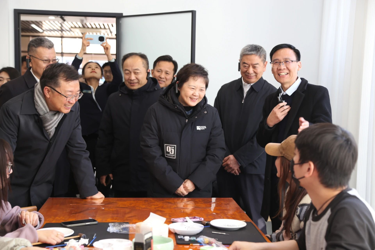 揭牌儀式結(jié)束后,謝力一行視察了槐蔭山東手造(非遺)展示體驗中心、潘魯生民藝館、山東水彩畫院以及帷幕開啦文藝蠟像館,一起感受了濟(jì)南老城底蘊(yùn)和新潮文化。在蠟像館身臨其境地感受了名人魅力風(fēng)采、傳統(tǒng)文化的視覺盛宴,參與了多元化場景互動,體驗到文化和科技融合所產(chǎn)生的效能已成為傳承文化蓬勃發(fā)展新形態(tài),使文化煥發(fā)出新的生機(jī)。