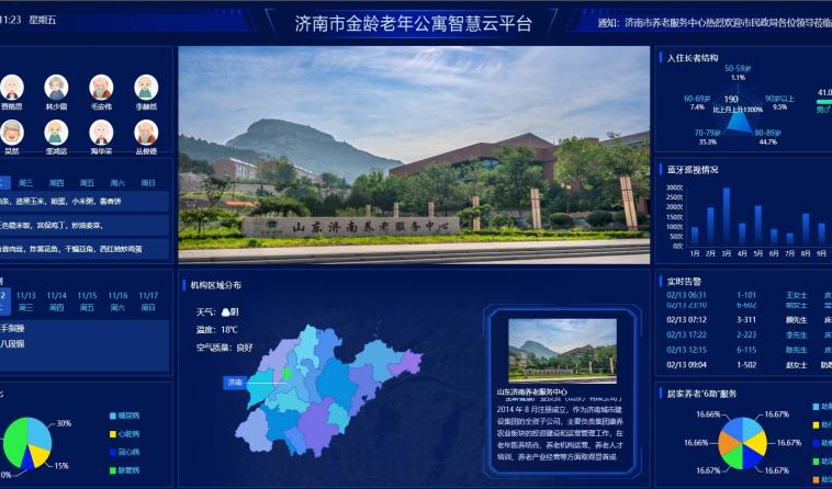 近年來,濟南市金齡老年公寓加大投入力度,完善硬件、軟件建設,積極探索“智慧養老”新途徑。硬件方面,建設數據中心,配置光纖交換機、核心網關、藍盾防火墻、存儲設備、網絡設備、UPS 電源、監控大屏、機房專用空調等;每個服務站都配置專門電腦管理端,進行數據動態管理、分析研判及全面監管。軟件方面,聯合知名公司啟用智慧養老服務平臺,覆蓋營銷、護理、護士、餐飲、物業、財務等各部門,包含入住管理、長者管理、日常照護、健康管理、活動管理、費用管理、物資管理、上門服務管理等諸多內容,為長者提供優質便利的養老服務。